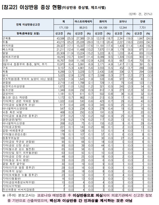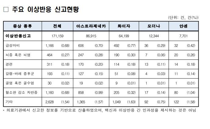또한 아래와 같이 다양한 이상반응 증상이 있습니다. 아래에 해당하는지 확인을 하는 것이 중요합니다. 접종후에 아래 증상이 해당된다면 질병관리청에 연락을 하고 심각한 증상은 즉시 내원을 해야합니다.