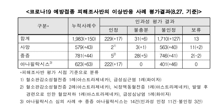 코로나19 예방접종 이상반응 사례 평가결과는 아래와 같습니다.