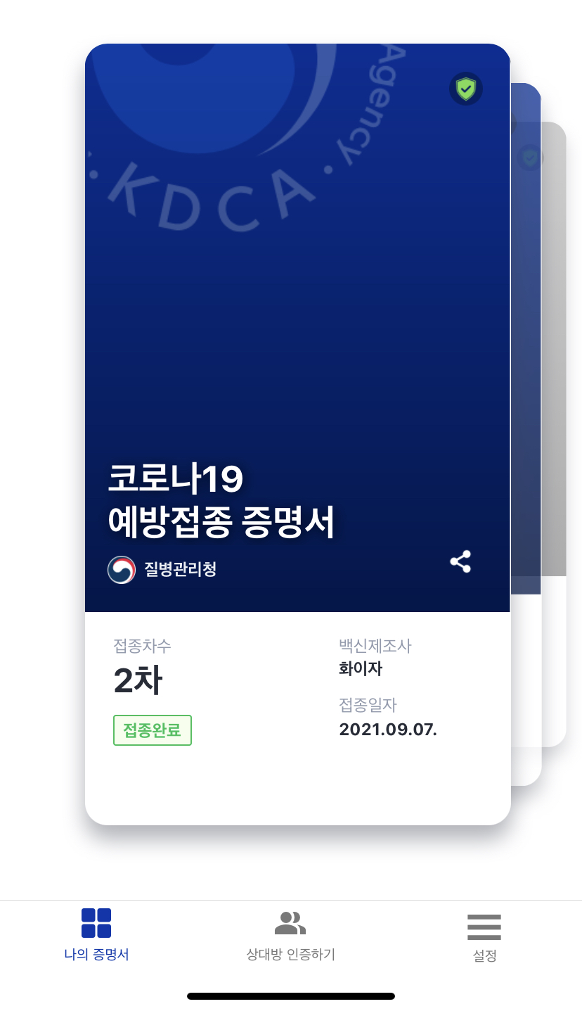 별다른 증상이 없어서 자택으로 돌아왔습니다. 돌아온 후에 쿠브앱에 아래와 같은 2차접종 증명서가 바로 발급되었습니다. 2차 접종 이후 개인차가 있어서 14일에서 21일 사이에 항체가 형성됩니다. 이후 부터는 비교적 안전하지만 질병관리청에서는 2차 접종자도 당분간 마스크를 쓰고 생활하는 것을 권장하고 있습니다.